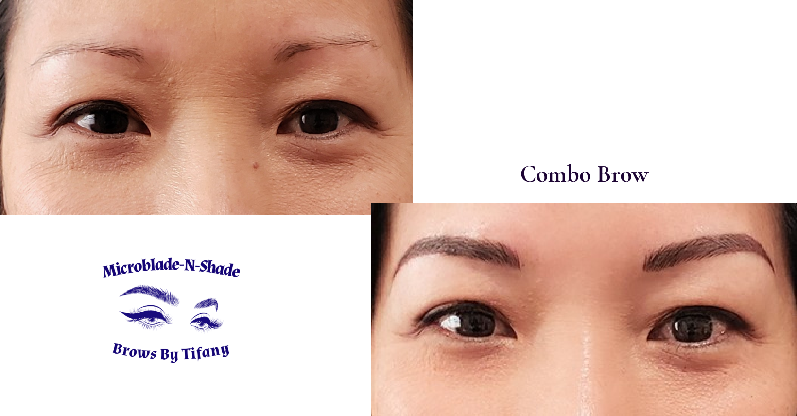 The love child of microblading and powder brow/micro shading. The combo brow is a full shaded brow (using a machine) with microbladed hair strokes only at the front part of the brow. Combo brows suit clients who prefer the filled in makeup look, who have dense and uneven eyebrows, and who still want the natural look of some hair like strokes at the front of their brows. Giving you up to 3 years of low maintenance carefree brows.